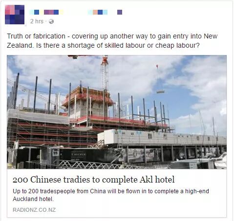很多新西兰人都认为这是中国资本对新西兰的又一次渗透,而最让他们质疑的就是,在新西兰本地还有很多人没有工作,为何要从海外引进中国劳工?