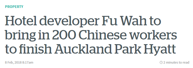 根据移民部长Iain Lees-Galloway今天发布的商业创新和就业部(MBIE)的备忘录,富华集团于昨日已经就引进200余名中国工人赴纽建房一事正式通知了新西兰移民局。